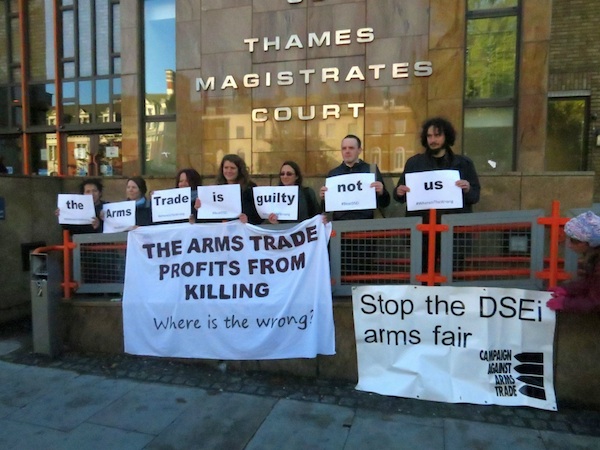 “The weapons companies and militaries responsible for the civilians killed on the streets of Bahrain and Egypt, for those killed in drone attacks, and even for arming Assad, will be in London. We’re taking action to stand in their way, to bring down the government support for the arms fair and to take on those who profit from conflict and repression.”