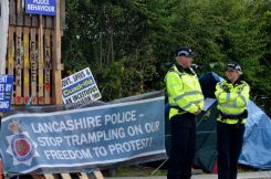 There remains a fairly significant number of protestors based at the camps that have been set up at Maple Farm Nurseries and on land behind the Lytham Windows building on Preston New Road. Activity varies on a daily basis at the Fracking site but there are days when there is a significant level of disruption continuing to take place.
